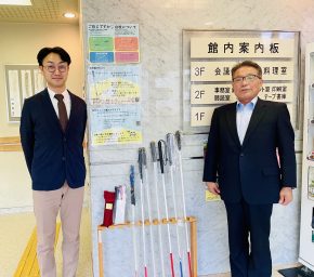 【白杖9本とステッキスタンド】を寄贈していただきました。