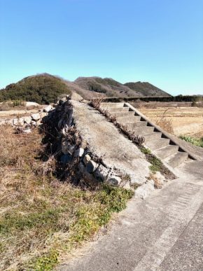 この写真は、船着き場の跡で階段と船のロープを引っかける石でできた杭の部分だけが残っていました。